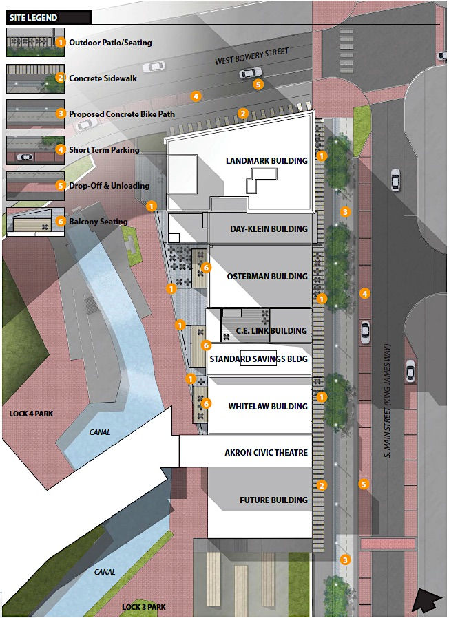 A recent addition to the plan is an arcade in the C.E. Link building that the city plans to issue $2 million in bonds to fund. The Link building, renamed the Lock 4 Arcade, would be a handicap-accessible public entrance with elevators, said Akron Chief of Staff James Hardy.