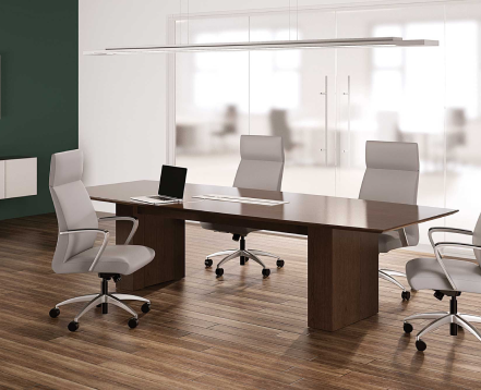 Concealed cable management and integrated technology let the elegant lines of JSI tables do the talking.