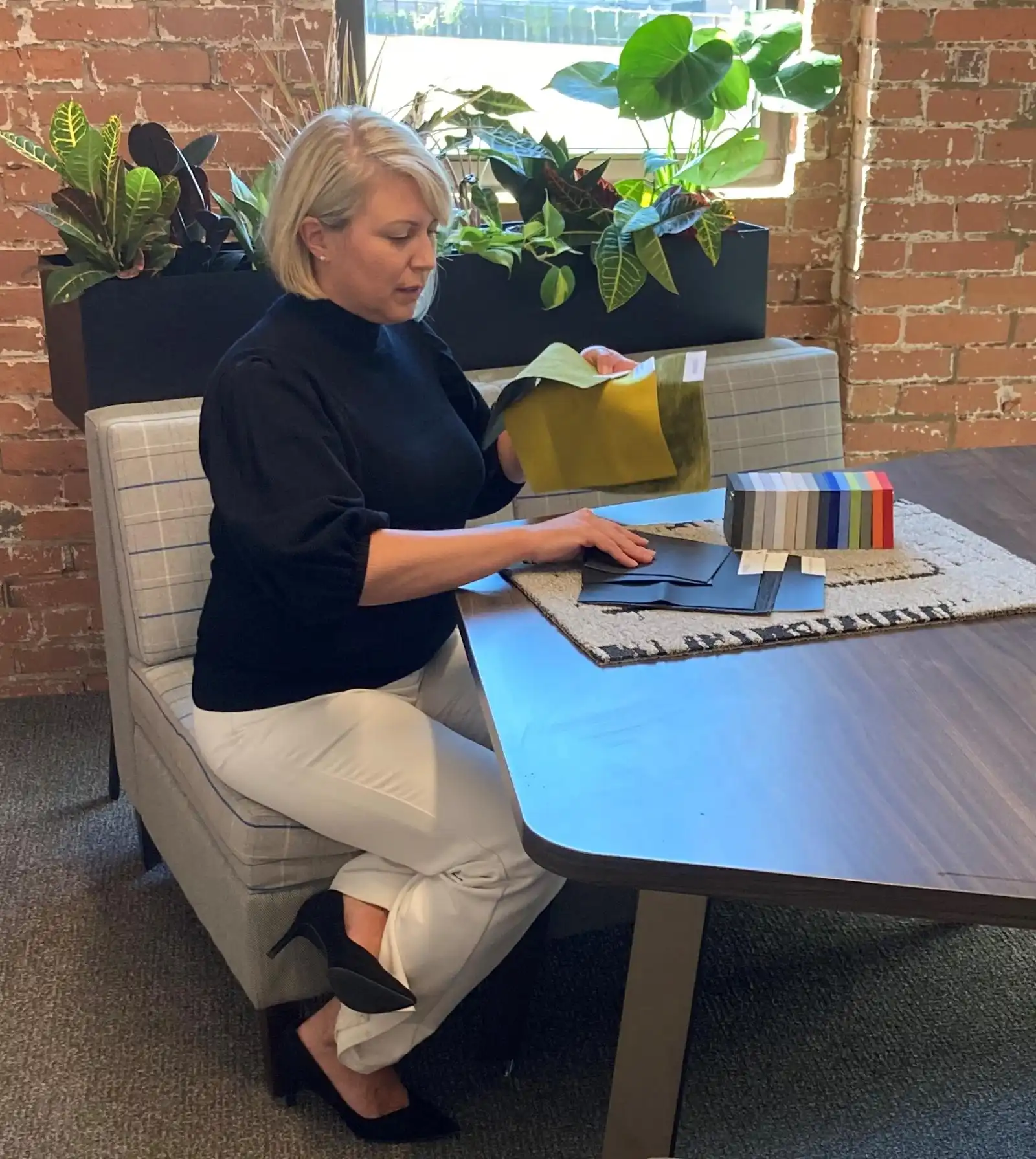 Employees share spaces that invite them to sit and create in ways that feel natural, encourage seamless interactions, conceive creative solutions, and foster collaborations across teams and departments. Whether that requires spaces for solo work, a standing-height table for impromptu brainstorming meetings, or a variety of seating options for weekly check-ins, their office has the right furniture needed to tackle the task head-on, and they want to help you tailor your office to do the same.