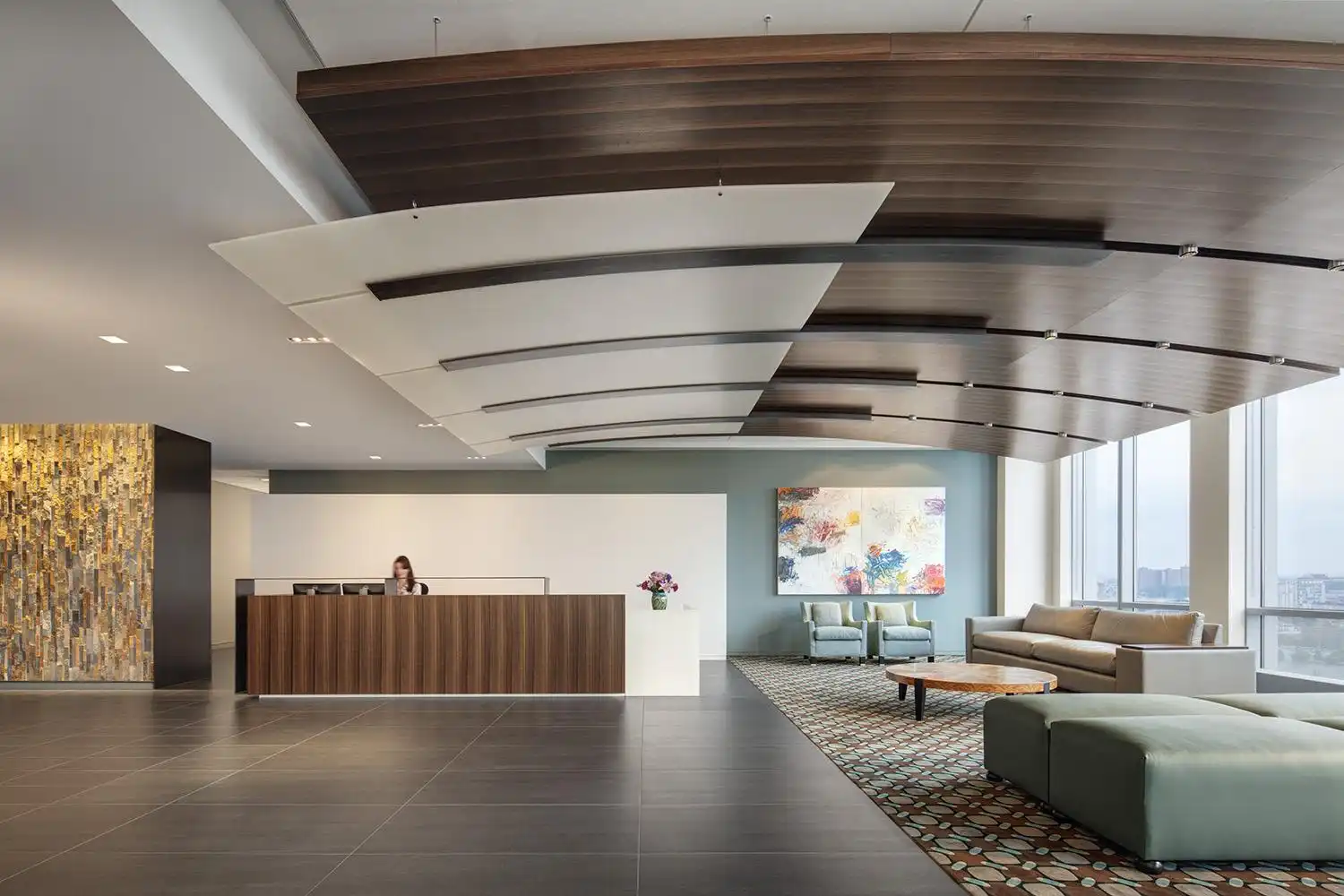 In 2013, Environments 4 Business in collaboration with architect ASD | SKY created a warm, bright office space for this downtown Cleveland Law Firm amongst a storm.