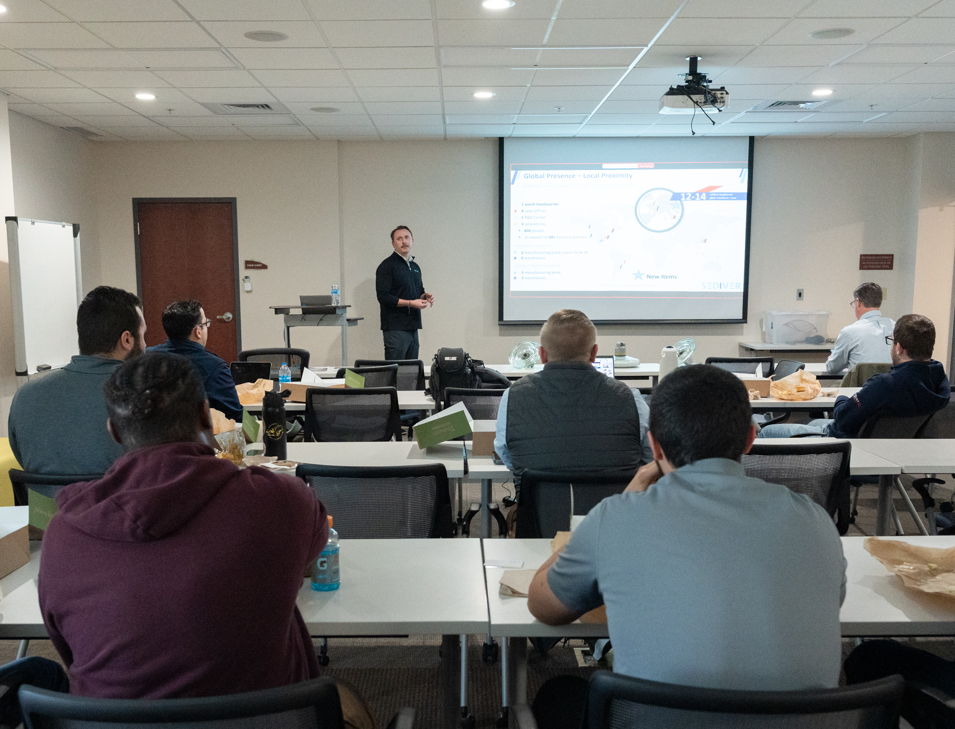 As part of our ongoing commitment to continuous education, this month’s Lunch & Learn featured was on manufacturing and science of Line Insulators led by Sediver’s Brett Buzek and Ron Duckstein. They led a detailed presentation on the advantages, manufacturing process, and durability of toughened glass insulators produced by Sediver, highlighting their superiority over porcelain and polymer alternatives, with practical demonstrations and customer adoption trends discussed. The meeting emphasized the product’s long service life, ease of inspection, and operational benefits, while also addressing challenges such as rare field failures and the impact of external factors like vandalism.